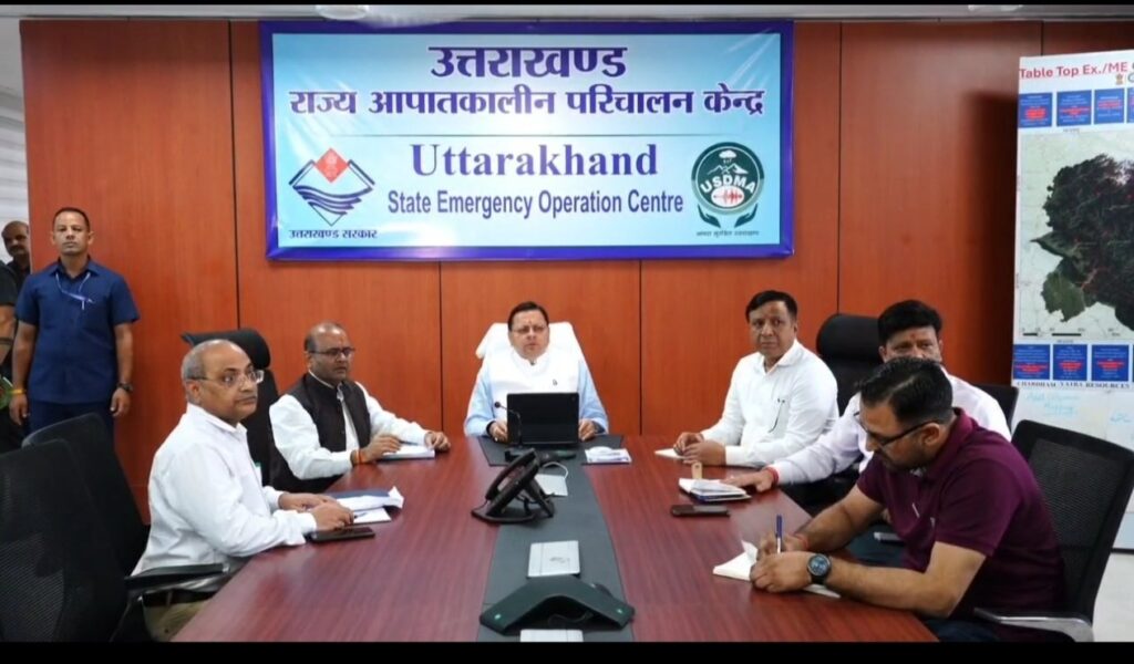 उत्तराखंड में लगातार हो रही भारी वर्षा के बीच मुख्यमंत्री पुष्कर सिंह धामी सोमवार को अचानक राज्य आपदा परिचालन केंद्र (SEOC) पहुंचे और आपदा प्रबंधन की तैयारियों की समीक्षा की। मुख्यमंत्री ने अधिकारियों के साथ बैठक कर वर्षा जनित आपदा की वर्तमान स्थिति की जानकारी ली और राहत-बचाव कार्यों की प्रगति का जायजा लिया।