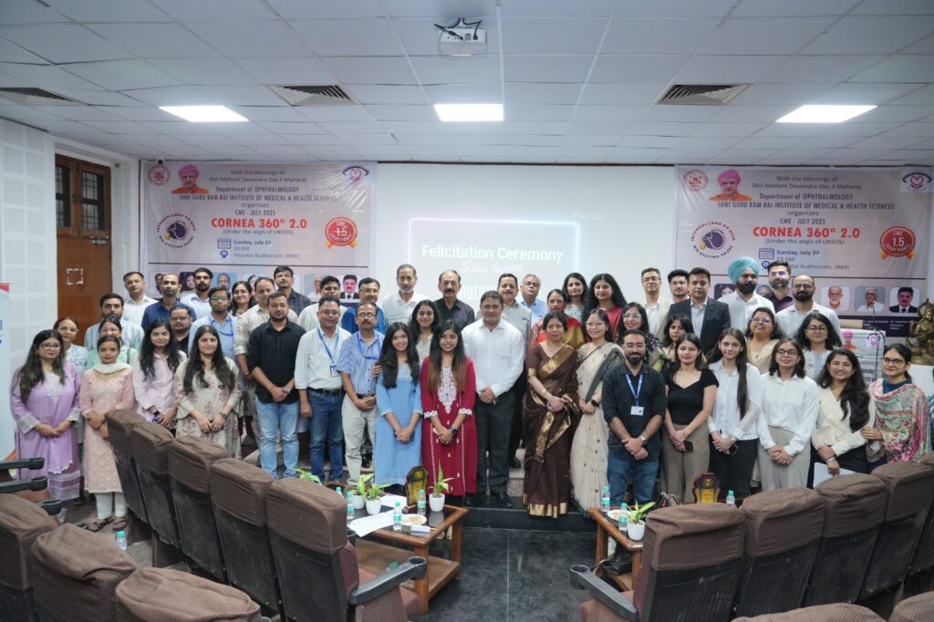 देहरादून। श्री गुरु राम राय इंस्टीट्यूट ऑफ मेडिकल एंड हेल्थ साइंसेज, श्री महंत इन्दिरेश अस्पताल के नेत्र रोग विभाग द्वारा रविवार को एक दिवसीय उच्चस्तरीय निरंतर चिकित्सा शिक्षा कार्यक्रम (सी.एम.ई.) ‘काॅर्निया 360° 2.0’ का आयोजन किया गया। कार्यक्रम का उद्देश्य रूमेटाइड आर्थराइटिस से पीड़ित रोगियों में होने वाली काॅर्निया संबंधी जटिलताओं पर जनजागरुकता फैलाना एवम् बीमारी की रोकथाम पर प्रकाश डालना था।