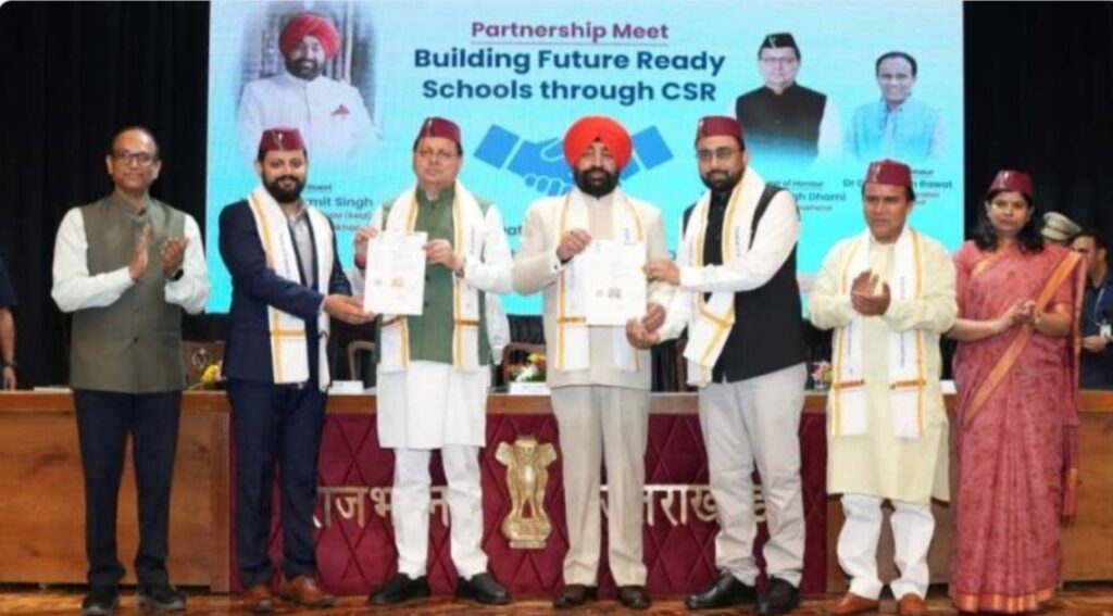 राज्यपाल लेफ्टिनेंट जनरल गुरमीत सिंह (से नि) एवं मुख्यमंत्री पुष्कर सिंह धामी ने बुधवार को राजभवन में आयोजित ‘‘भविष्य के लिए तैयार स्कूलों के निर्माण’’ (बिल्डिंग फ्यूचर रेडी स्कूल्स थ्रू सीएसआर) कार्यक्रम में प्रतिभाग किया। उनकी उपस्थिति में उत्तराखण्ड के सरकारी विद्यालयों में आधुनिकीकरण एवं बेहतर शैक्षणिक वातावरण के लिये सीएसआर निधि से होने वाले विकास हेतु शिक्षा विभाग और उद्योग जगत के बीच एमओयू पर हस्ताक्षर हुए। कार्यक्रम में शिक्षा विभाग द्वारा आईजीएल, रिलैक्सो फुटवियर, कन्विजीनियस, ताज ग्रुप एवं गोंडवाना रिसर्च के साथ एमओयू किया गया। इस अवसर पर राज्यपाल लेफ्टिनेंट जनरल गुरमीत सिंह (से नि) ने कहा कि राज्य की शिक्षा व्यवस्था को मजबूती देने और नए युग की शुरूआत हेतु यह एक निर्णायक कदम है। उन्होंने कहा कि मुख्यमंत्री पुष्कर सिंह धामी द्वारा आरंभ की गई यह अभिनव योजना दूरगामी प्रभाव डालने वाली है, जो राज्य की युवा और अमृत पीढ़ी को एक समृद्ध, सक्षम और उज्ज्वल भविष्य प्रदान करेगी। राज्यपाल ने कहा कि उत्तराखण्ड में उद्योग जगत के साथ साझेदारी से शिक्षा व्यवस्था में एक नई ऊर्जा का संचार होगा और इसके ऐतिहासिक परिणाम सामने आएंगे।