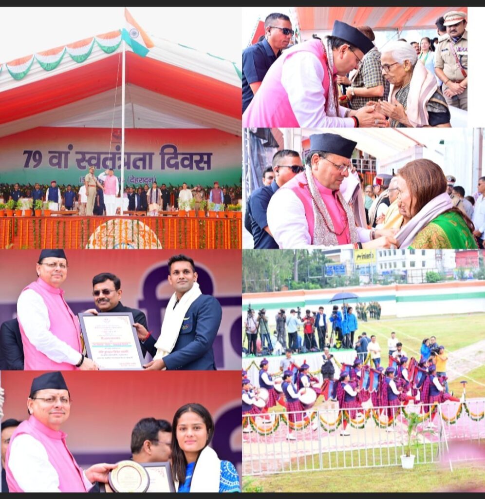 मुख्यमंत्री पुष्कर सिंह धामी ने 79वें स्वतंत्रता दिवस के अवसर पर परेड ग्राउंड देहरादून में राज्य के मुख्य कार्यक्रम में ध्वजारोहण किया। इस अवसर पर मुख्यमंत्री ने स्वतंत्रता संग्राम सेनानियों के परिजनों को सम्मानित किया एवं फोटो प्रदर्शनी का अवलोकन भी किया।