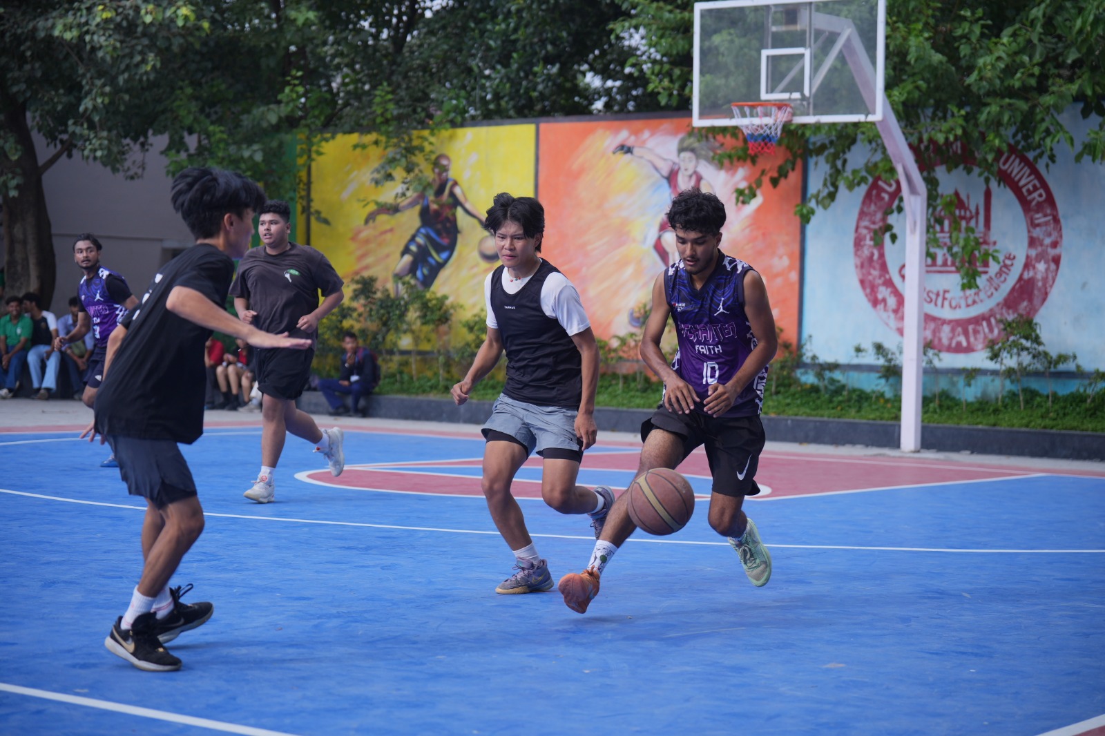 बालक वर्ग बास्केटबॉल में स्कूल ऑफ ह्यूमैनिटीज ने स्कूल ऑफ इंजीनियरिंग एण्ड टेक्नोलॉजी को शिकस्त दी।