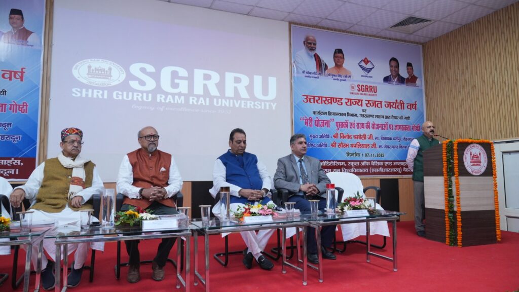 देहरादून। उत्तराखण्ड राज्य स्थापना दिवस के अवसर पर शुक्रवार को श्री गुरु राम राय विश्वविद्यालय, देहरादून में कार्यक्रम क्रियान्वयन विभाग, उत्तराखण्ड शासन के तत्वावधान में “मेरी योजना” पुस्तकों के संबंध में एक जागरूकता गोष्ठी का आयोजन किया गया। इस कार्यक्रम का उद्देश्य विद्यार्थियों व नागरिकों को केन्द्र और राज्य सरकार की विभिन्न जनकल्याणकारी योजनाओं की जानकारी देना था।