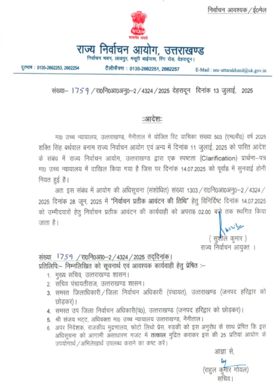 देहरादून। राज्य निर्वाचन आयोग ने निकाय चुनाव से जुड़े एक अहम फैसले के तहत चुनाव…